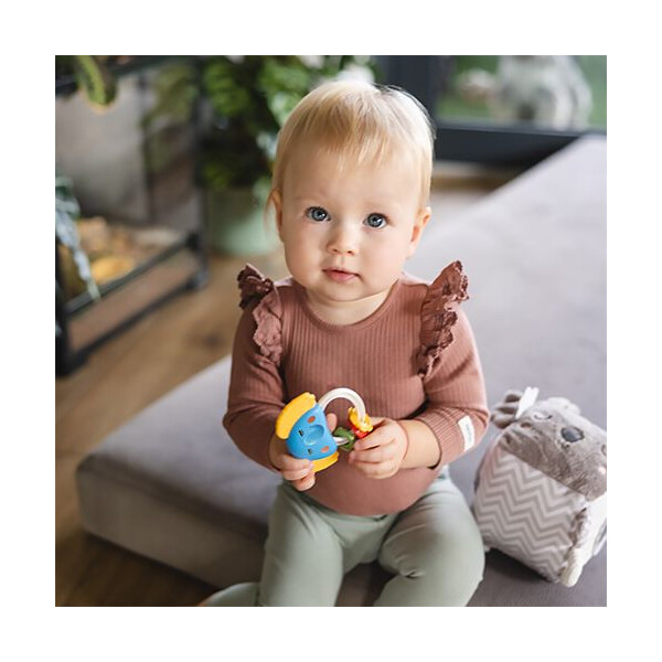Η πρώτη αγαπημένη κουδουνίστρα του μωρού σας! Πολύχρωμη, ασφαλής και σχεδιασμένη για να προσφέρει χαρά, ανακούφιση στην οδοντοφυΐα και υγιή ανάπτυξη από τις πρώτες κιόλας μέρες ζωής.