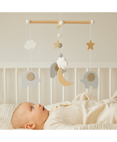 Το μόμπιλε θα προσφέρει στο μωράκι σας ηρεμία και θα το βοηθήσει να αναπτυχθεί! Τα αιωρούμενα ζωάκια-παιχνιδάκια προσελκύουν την προσοχή του μωρού, ενώ ο χαλαρωτικός του ήχος το νανουρίζει.