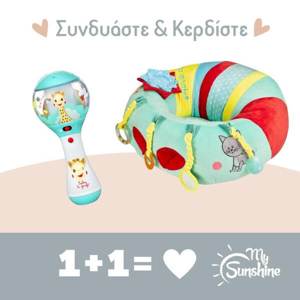 Το θριαμβικό και βραβευμένο με Mother & Baby Award μαξιλάρι παιχνιδιού της Σόφι της Καμηλοπάρδαλης είναι εδώ για να προσφέρει άνεση, στήριξη και παιχνίδι στο μωρό σας!