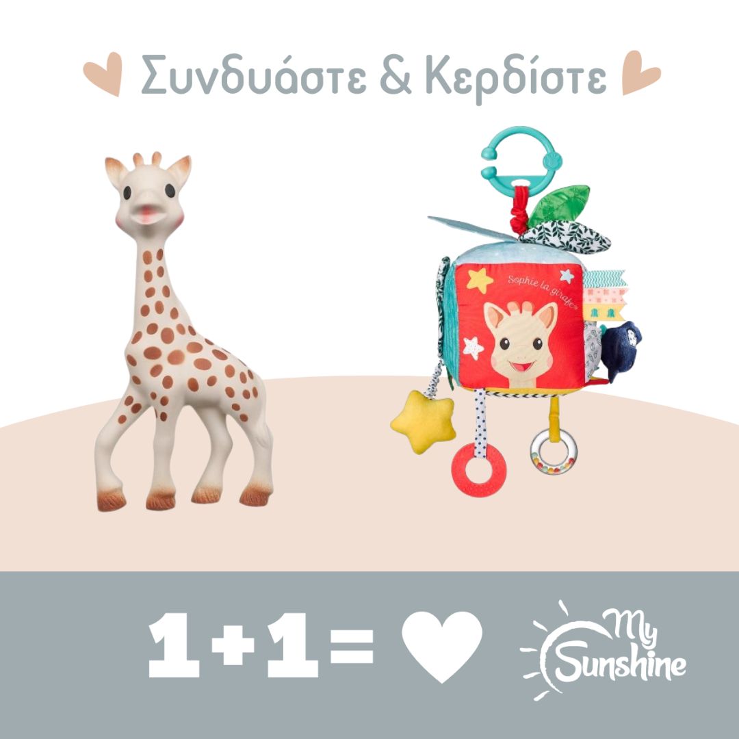 Χαρίστε στο μωρό σας τον κόσμο του παιχνιδιού, της μάθησης και της αισθητηριακής εξερεύνησης με την προσφορά δύο αγαπημένων παιχνιδιών Σόφι! Ιδανική για δώρο ή για να ενισχύσετε τις πρώτες εμπειρίες του μωρού σας με ασφάλεια, διασκέδαση και ποιότητα που έχει αγαπηθεί σε όλο τον κόσμο.