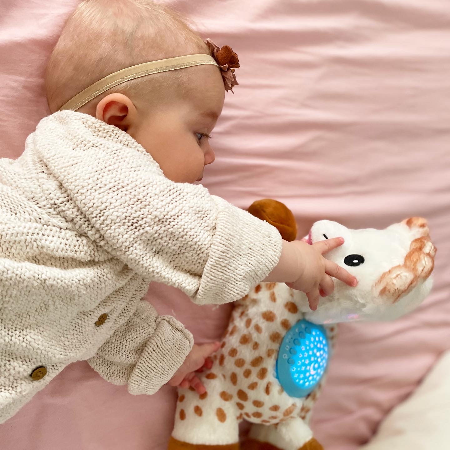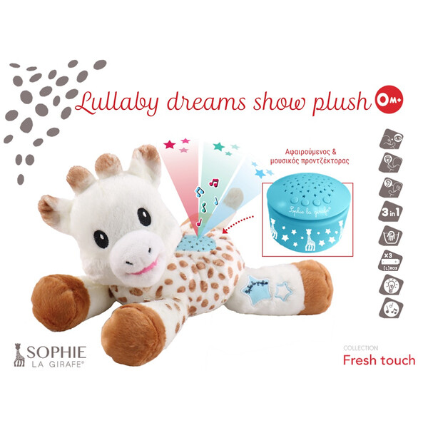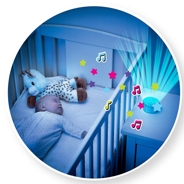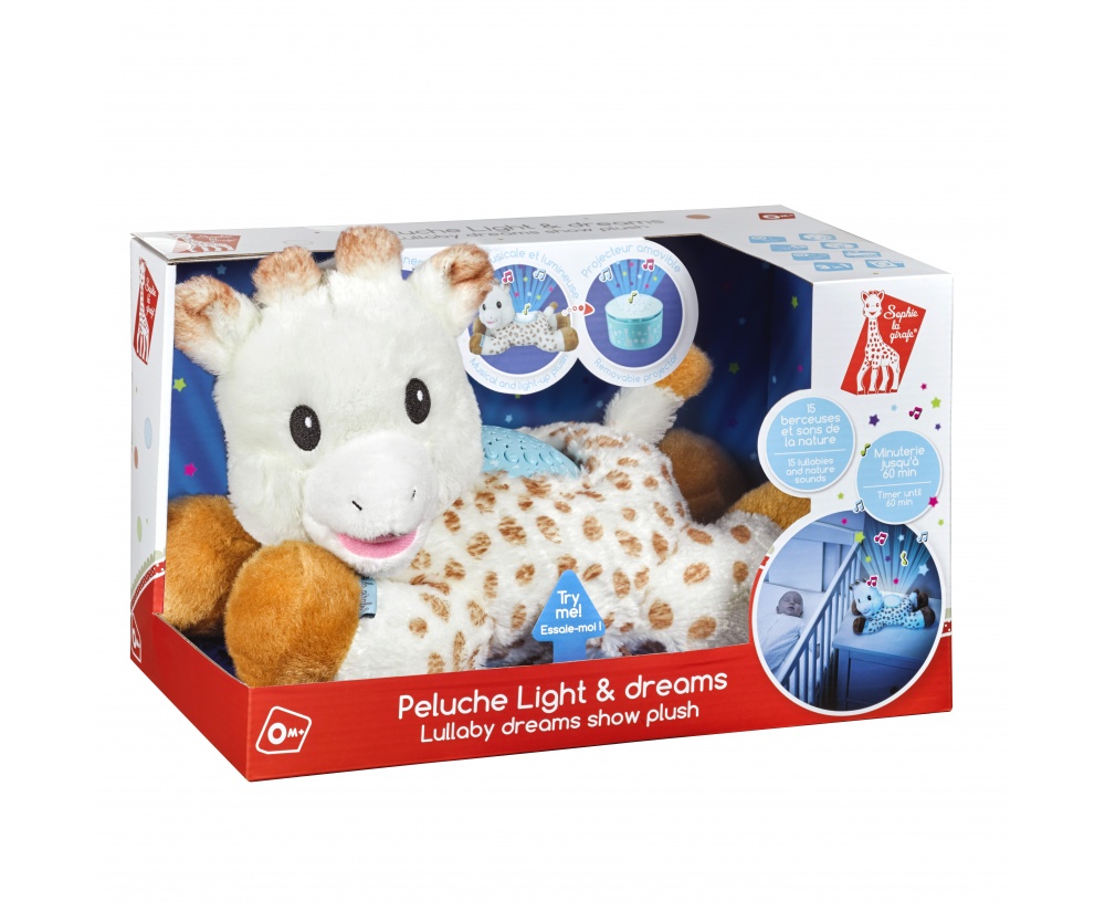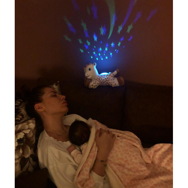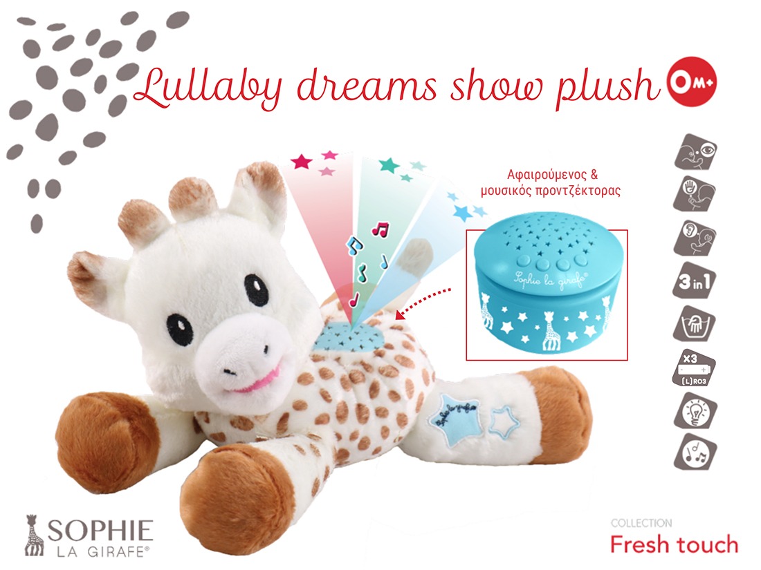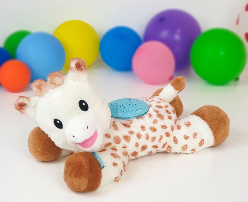 Η αγαπημένη Σόφι σε μια πολυλειτουργική εκδοχή που συνδυάζει παιχνίδι, χαλάρωση και υποστήριξη ύπνου. Ένα προϊόν 3 σε 1 που λειτουργεί ως λούτρινο αγκαλιάς, συσκευή ήχων και προτζέκτορας έγχρωμων αστεριών, δημιουργώντας ένα ήρεμο και καθησυχαστικό περιβάλλον για το μωρό.