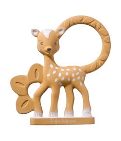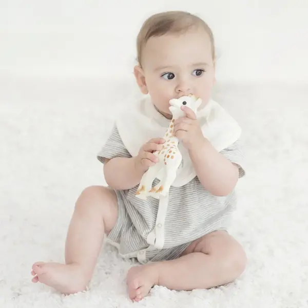 A: Ναι, η Σόφι είναι φτιαγμένη από 100% φυσικό καουτσούκ, καθιστώντας την ένα ασφαλές και φυσικό παιχνίδι οδοντοφυΐας για το μικρό σας.