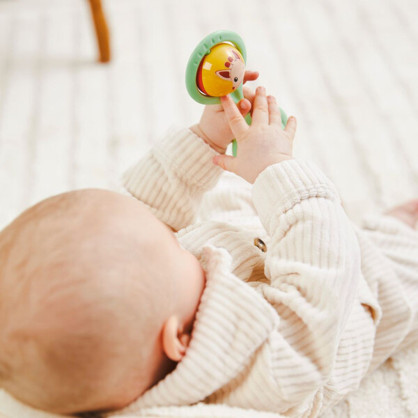 A: Ναι, η κουδουνίστρα είναι σε μικρό μέγεθος, τέλειο για τα μικρά του χεράκια, και είναι κατάλληλη από 0+ μηνών. Επιπλέον, βγάζει ήχο "πιου-πιου" όταν πιέζεται και έχει κουδουνάκι όταν κουνιέται, προσφέροντας ερεθίσματα.