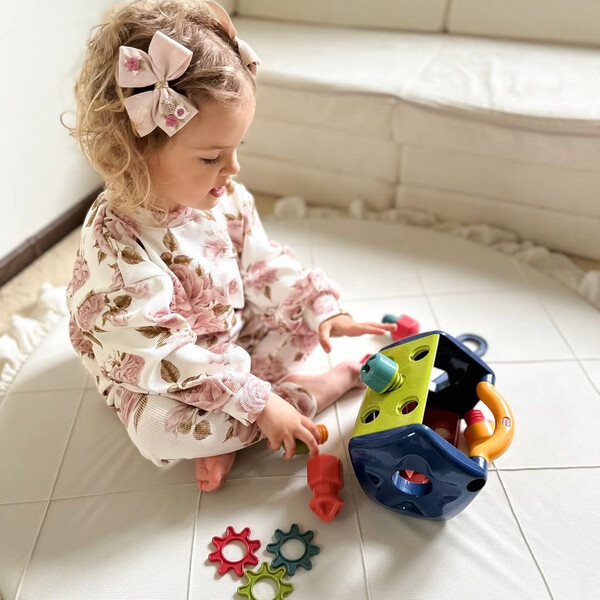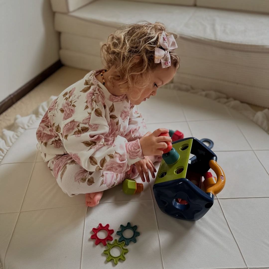 Περιλαμβάνει 14 εργαλεία, όπως κατσαβίδι, κλειδιά, βίδες Phillips, βίδες, παξιμάδια και γρανάζια. Έχει μια ανθεκτική λαβή ώστε το παιδί σας να μπορεί να μεταφέρει όλα τα εργαλεία στην επόμενη εργασία. Κατάλληλο για παιδιά από 12 μηνών και άνω.