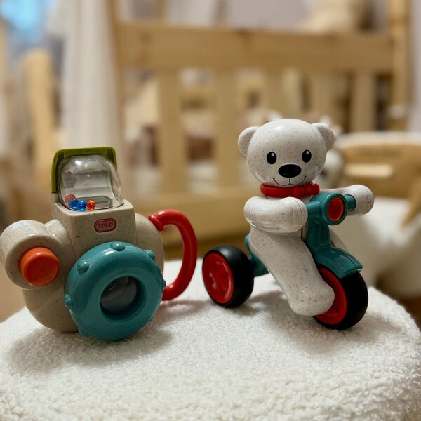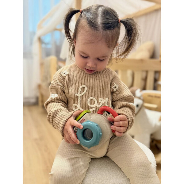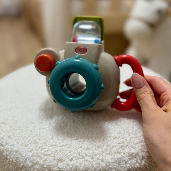 Η Baby Camera είναι ένα παιχνιδάκι που φέρνει τη μαγεία της φωτογραφίας στα μικρά χεράκια! Πατώντας το κουμπί, εμφανίζεται το pop-up φλας, ενώ ο φακός κάνει ήχο “click” και ένα χαρούμενο αρκουδάκι κινείται πέρα-δώθε μέσα από τον φακό. Ο εργονομικός σχεδιασμός με χερούλι-λαβή επιτρέπει εύκολο κράτημα και ανεξάρτητο παιχνίδι.