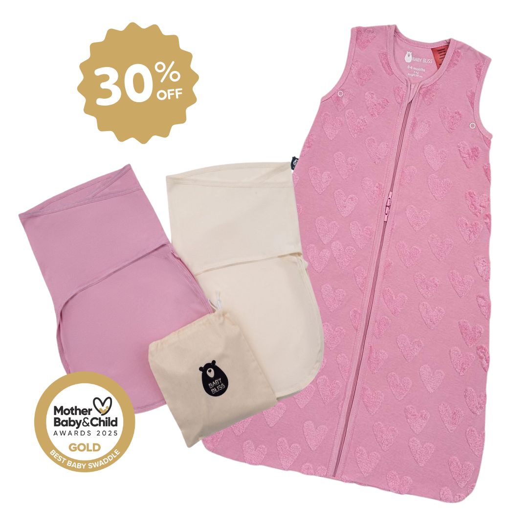 Αυτό το μοναδικό πακέτο καλύπτει διαφορετικές ανάγκες για διαφορετικά στάδια του ύπνου, εξασφαλίζοντας μια ομαλή και άνετη μετάβαση για το μωρό σας. Από την πάνα φασκιώματος BlissSnug για τις πρώτες νύχτες (0-3 μηνών), μέχρι τον BlissSac Υπνόσακο για ζεστές και άνετες νύχτες όταν το μωρό μεγαλώσει (0-6 μηνών), καλύπτεται κάθε ανάγκη του μικρού σας για έναν ήρεμο και ασφαλές ύπνο.