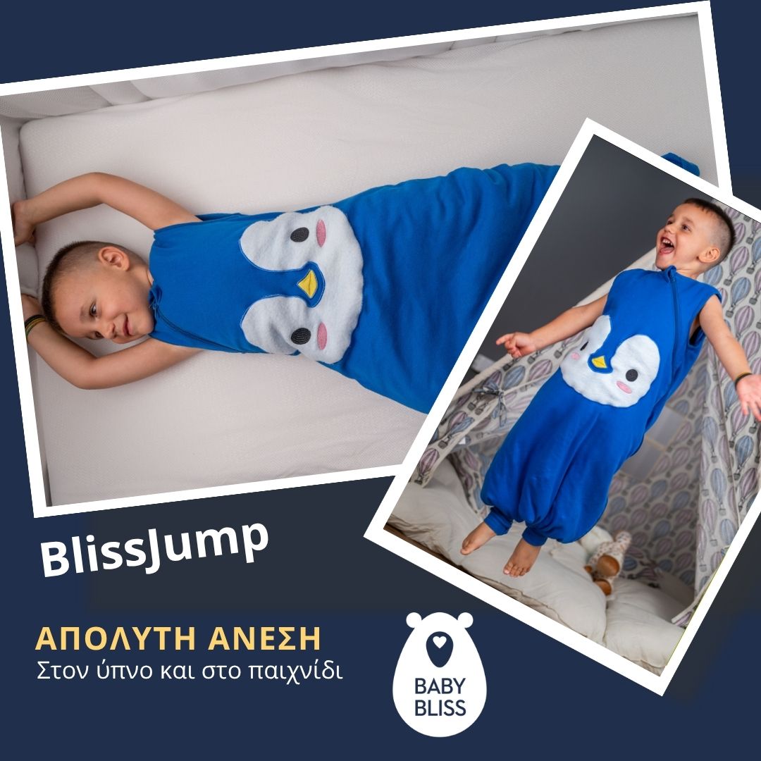 Οι υπνόσακοι BlissJump σχεδιάστηκαν για τα δραστήρια παιδιά που θέλουν να παίζουν πριν τον ύπνο ή μπορεί να σηκώνονται τη νύχτα. Είναι η τέλεια λύση για γονείς που θέλουν να προσφέρουν ασφάλεια και άνεση, χωρίς να περιορίσουν την ελευθερία του παιδιού τους.