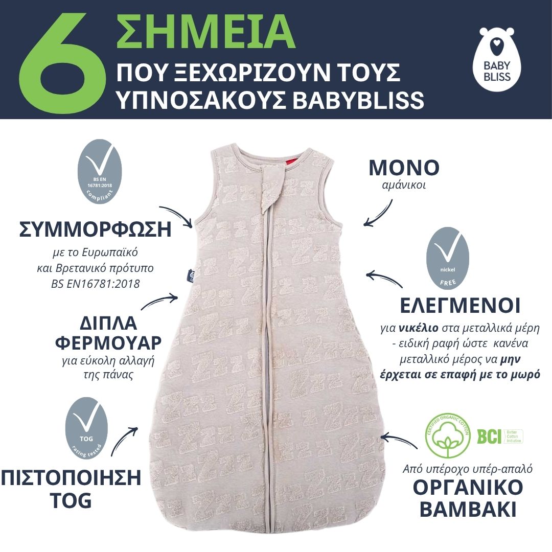 Ιδανικοί για κάθε εποχή! Οι υπνόσακοι BabyBliss διατηρούν τη σωστή θερμοκρασία για το μωρό σας—ούτε πολύ ζεστά, ούτε κρύα.