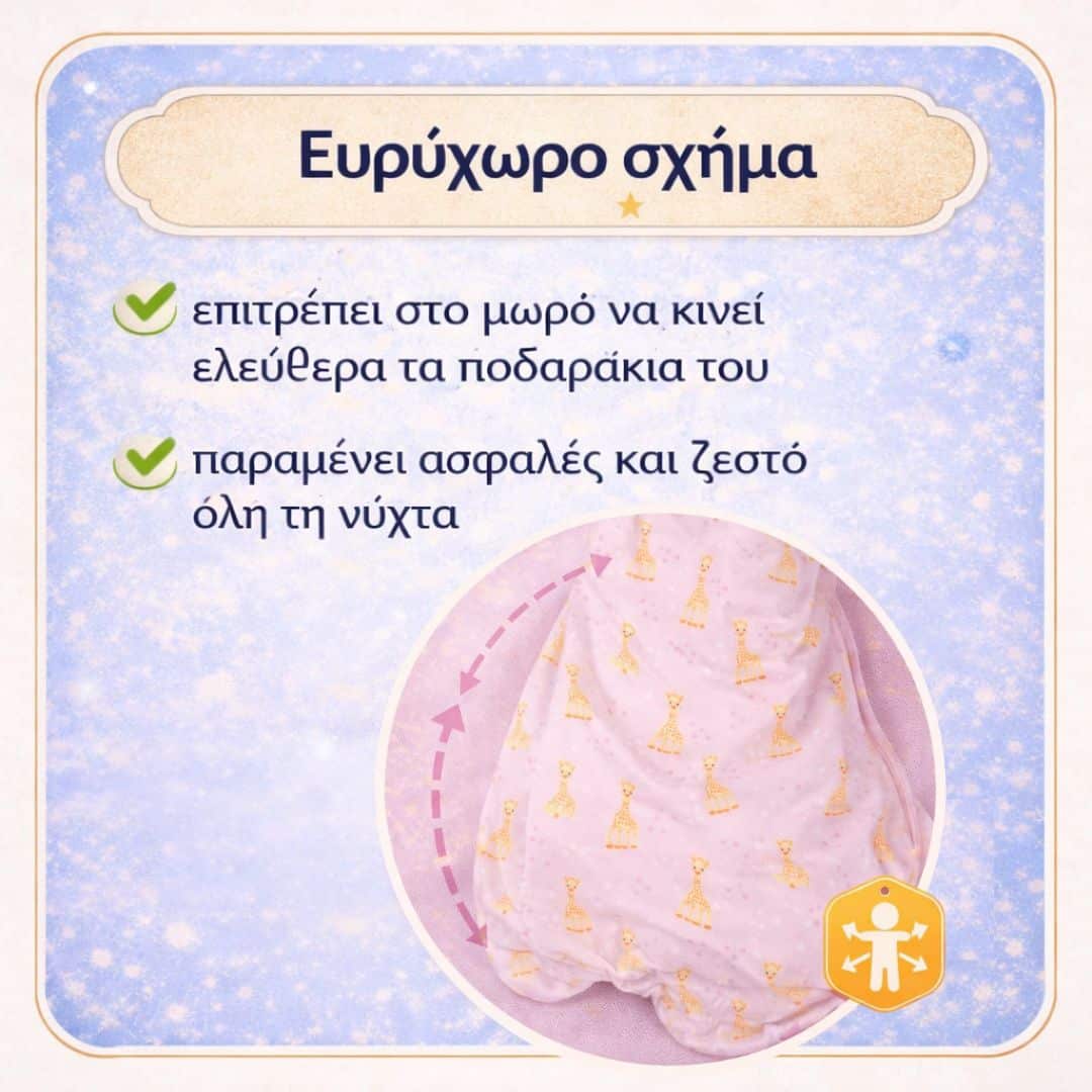 Σε συνεργασία με τη Σόφι την Καμηλοπάρδαλη, το πιο αγαπημένο βρεφικό brand παγκοσμίως, οι υπνόσακοι BabyBliss σχεδιάστηκαν για να προσφέρουν στο μωρό σας τη μέγιστη άνεση, ασφάλεια και ιδανική θερμοκρασία ύπνου κάθε βράδυ.