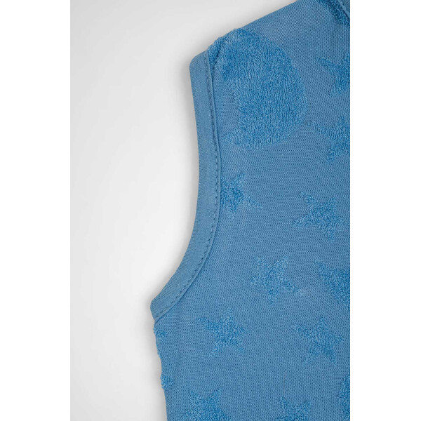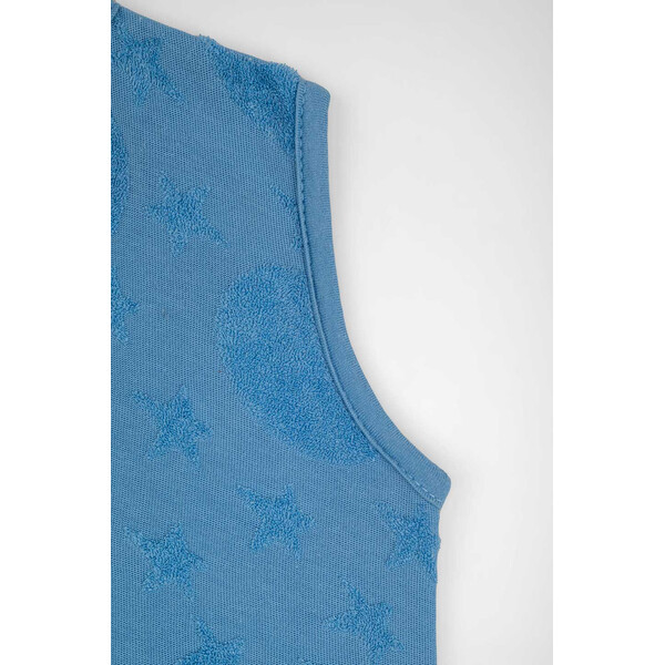 Χωρίς μανίκια, ώστε το μωρό να αποβάλει τη θερμότητα από τα χεράκια και να αποφεύγεται ο κίνδυνος υπερθέρμανσης, που θα μπορούσε να είναι επικίνδυνος.