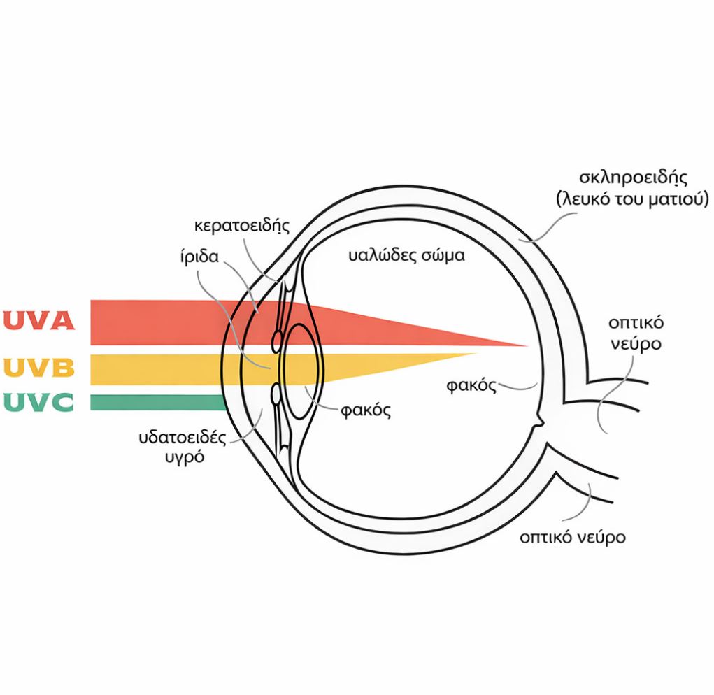 Στα παιδιά, ο κίνδυνος είναι ακόμη μεγαλύτερος, καθώς ο φακός των ματιών τους είναι πιο διαπερατός στην UV ακτινοβολία.