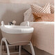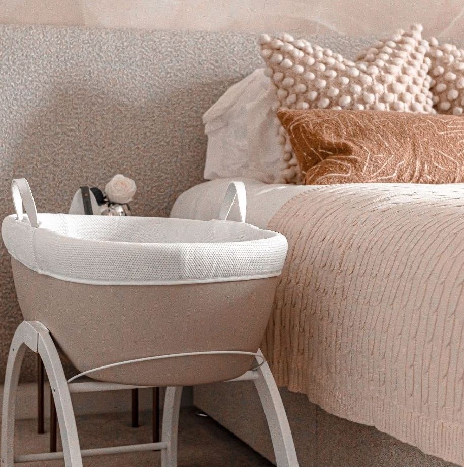 Καλαθούνα και βάση δύο θέσεων — χαμηλή με απαλό λίκνισμα και ψηλή σταθερή για εύκολη επίβλεψη.