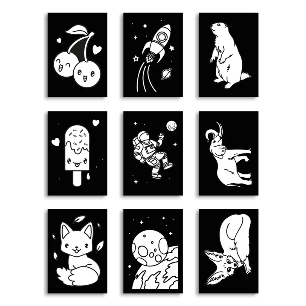 Αυτό το πακέτο με τις 9 κάρτες είναι ένα δημιουργικό παιχνίδι χειροτεχνίας με μαγικό φως, που κρατά το παιδί απορροφημένο, χωρίς οθόνες.