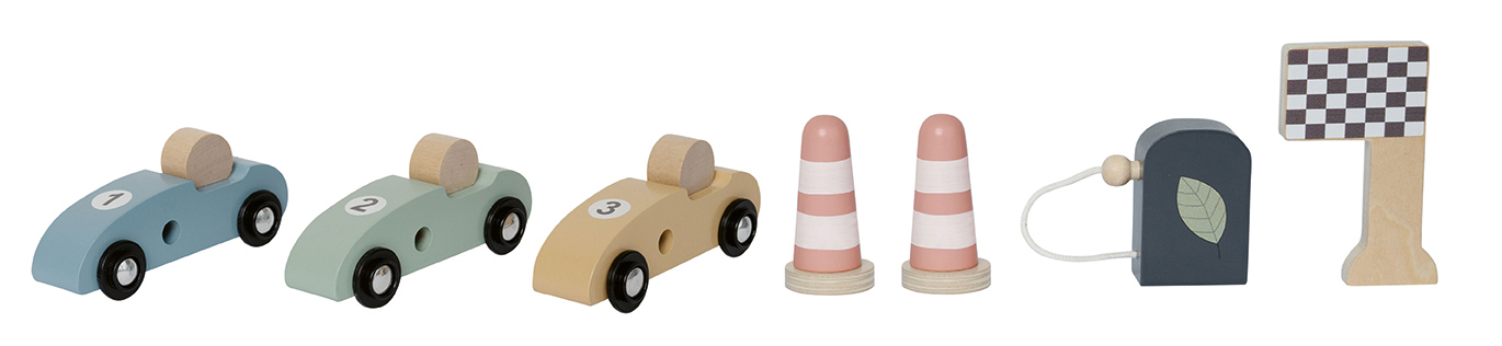 Η πίστα είναι σχεδιασμένη σαν οβάλ σχήμα με ομαλές στροφές, διαγραμμίσεις από την εκκίνηση μέχρι τον τερματισμό και μια εντυπωσιακή ράμπα πολλαπλών επιπέδων, όπου τα αυτοκινητάκια εκτοξεύονται με φόρα. Ιδανικό παιχνίδι για μικρούς λάτρεις της ταχύτητας – είτε πρόκειται για μια φιλική αναμέτρηση είτε για το πιο συναρπαστικό πρωτάθλημα στο παιδικό δωμάτιο!