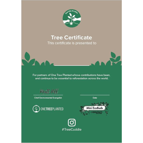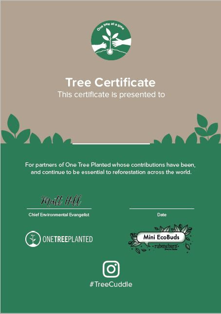 - Λαμβάνετε ένα πιστοποιητικό υπογεγραμμένο από τον οργανισμό "One Tree Planted".