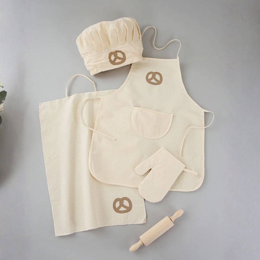Το σετ Chef Clothes έχει όλα όσα χρειάζεται ένας μικρός σεφ για να ετοιμάσει τις πιο φανταστικές λιχουδιές: σκούφο, ποδιά, πετσέτα και γάντι φούρνου! Ιδανικό για παιχνίδι μαγειρικής, φανταστικά “εστιατόρια” ή για να βοηθήσουν οι μικροί βοηθοί στη μαμά και τον μπαμπά.