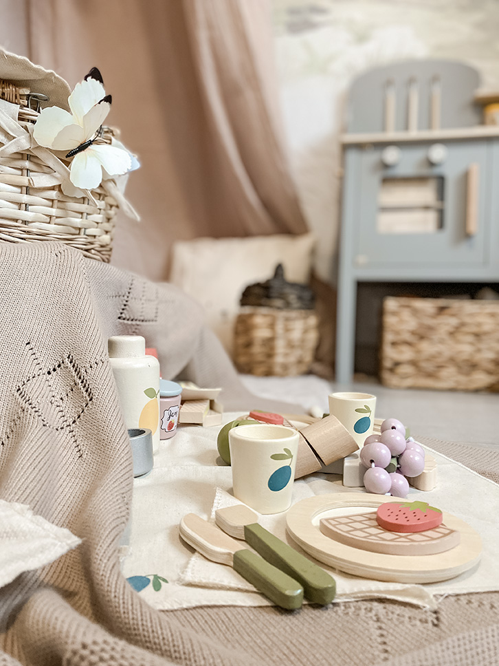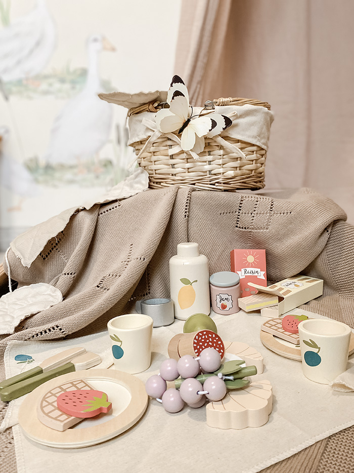 Φανταστείτε ένα ηλιόλουστο απόγευμα στην εξοχή, με ένα καλάθι πικ νικ όπως στις αγαπημένες σας ταινίες! Αυτό το υπέροχο σετ πικ νικ για 2 άτομα, εμπνευσμένο από την Προβηγκία, προσκαλεί τα παιδιά σε ένα παιχνίδι ρόλων γεμάτο φαντασία, χαρά και κοινωνικότητα.