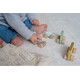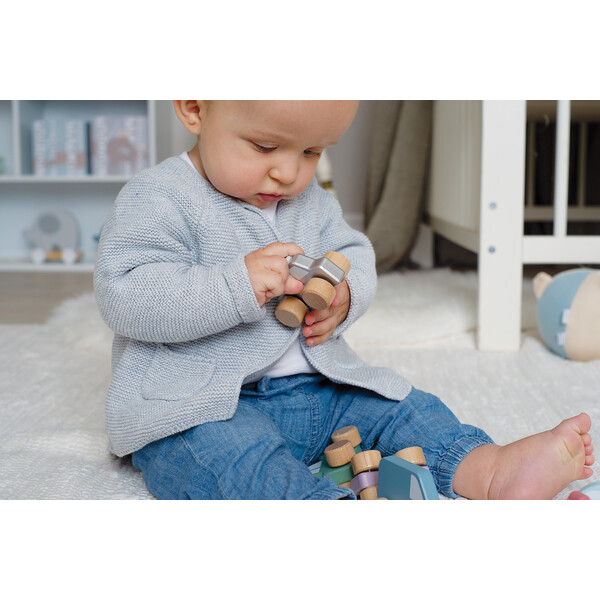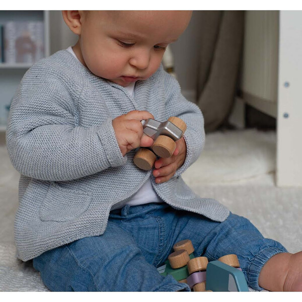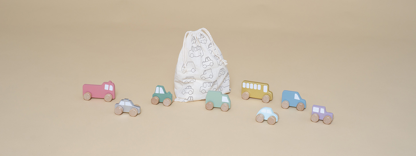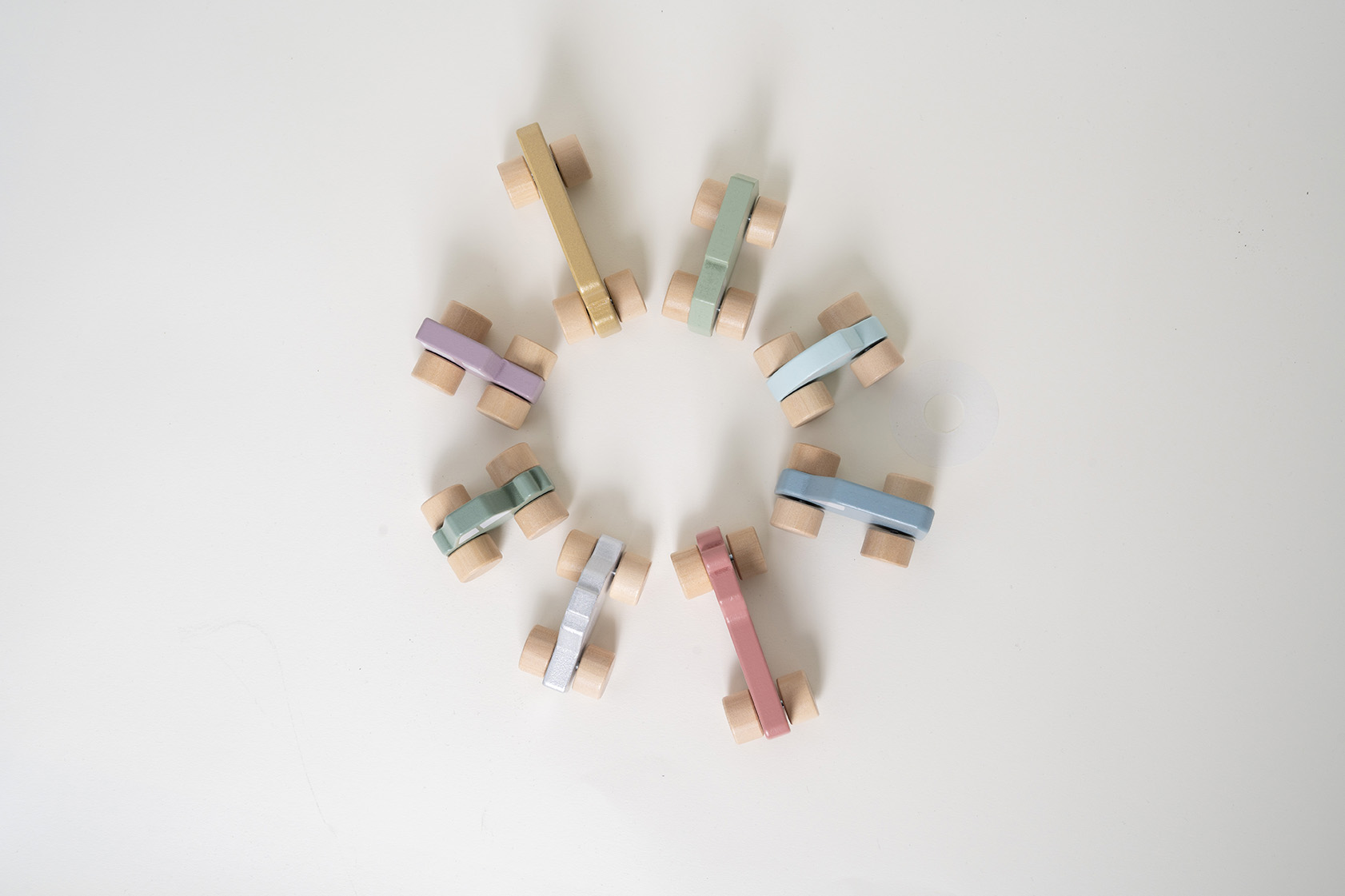 Αυτά τα ξύλινα αυτοκινητάκια είναι ειδικά σχεδιασμένα για τα μικρά χεράκια – ελαφριά, με στρογγυλεμένες άκρες και τροχούς που κυλούν ομαλά πάνω σε κάθε επιφάνεια. Τα ζωηρά τους χρώματα τραβούν το βλέμμα, ενώ τα υλικά είναι απολύτως ασφαλή για παιδιά.
