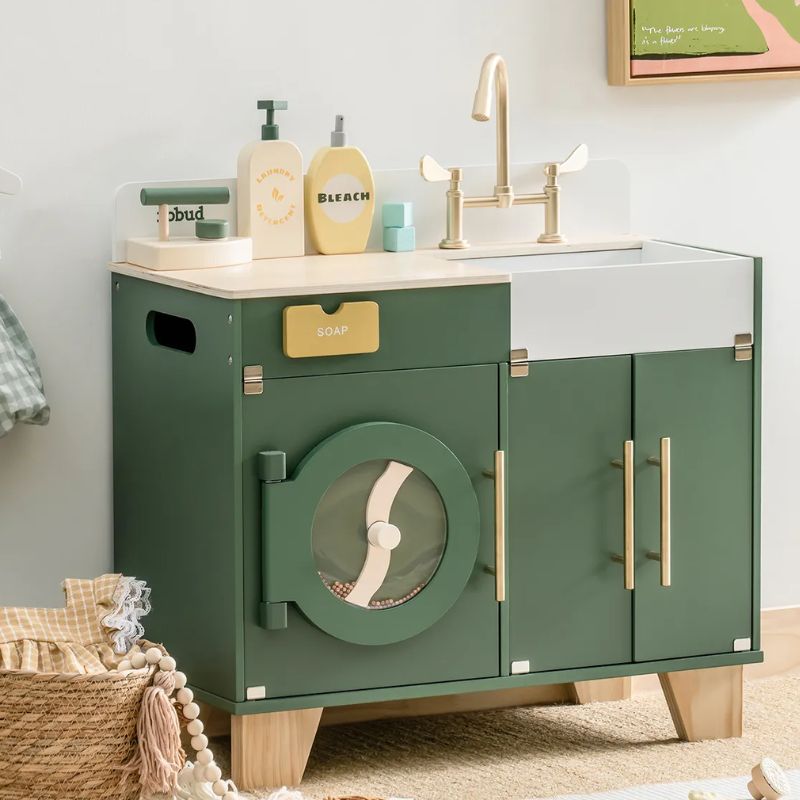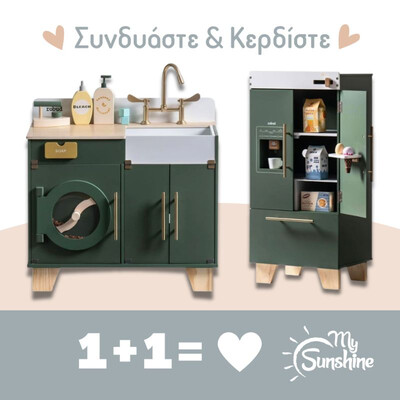Για μια ολοκληρωμένη εμπειρία παιχνιδιού, συμπληρώστε το σετ με τη ξύλινη κουζίνα και το ξύλινο πλυντήριο