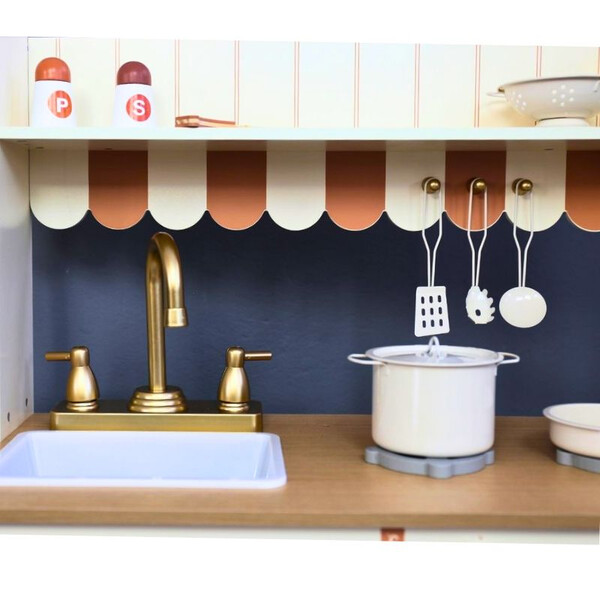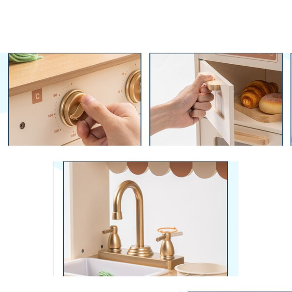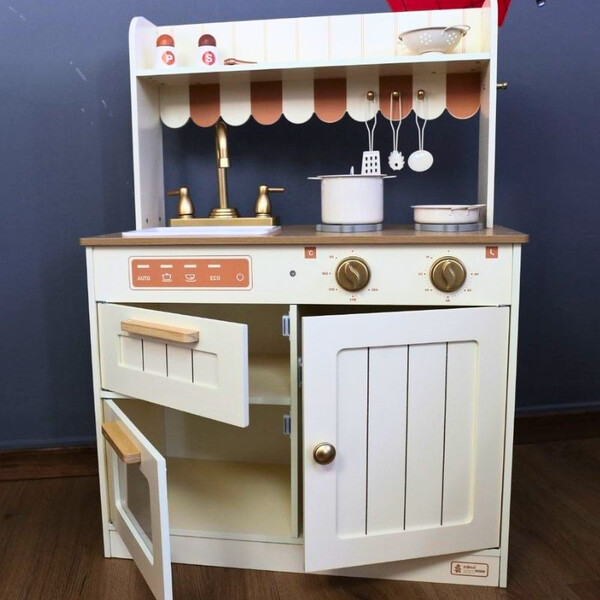 Ανακαλύψτε τη μαγεία της παιδικής κουζίνας με vintage αισθητική που θα αναζωογονήσει κάθε γωνιά του σπιτιού σας! Σε κρεμ χρώμα, αυτή η κουζίνα συνδυάζει το ρετρό στυλ με μια υπέροχη ρεαλιστική κατασκευή, προσφέροντας στο παιδί σας την τέλεια εμπειρία μαγειρικής. Εξοπλισμένη με όλα τα απαραίτητα εργαλεία για τον μικρό σεφ, περιλαμβάνει δύο εστίες για μαγειρική, νεροχύτη με βρύση, φούρνο και ντουλάπια για αποθήκευση.