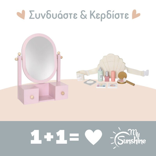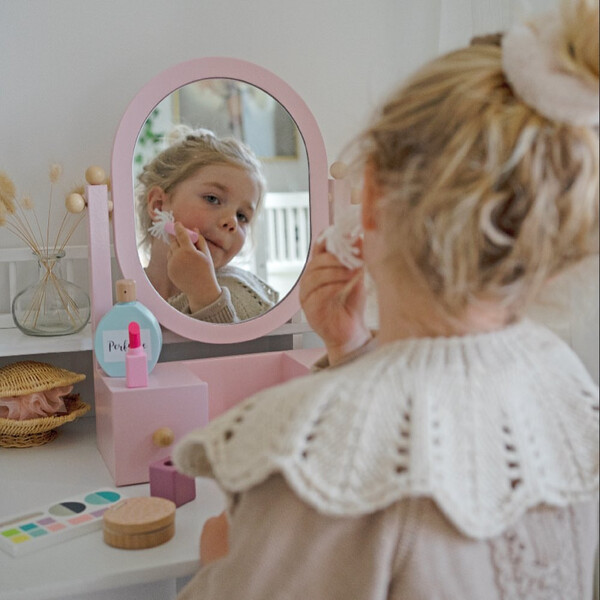 Αυτός ο καθρέφτης λέει πάντα την αλήθεια γιατί απεικονίζει τη δκή σας αληθινή ομορφιά! Ιδανικός για χτένισμα, μακιγιάζ και αποθήκευση κοσμημάτων με συρταράκια, ραφάκι και κουμπάκια για κολιέ, βραχιόλια και στέκες.