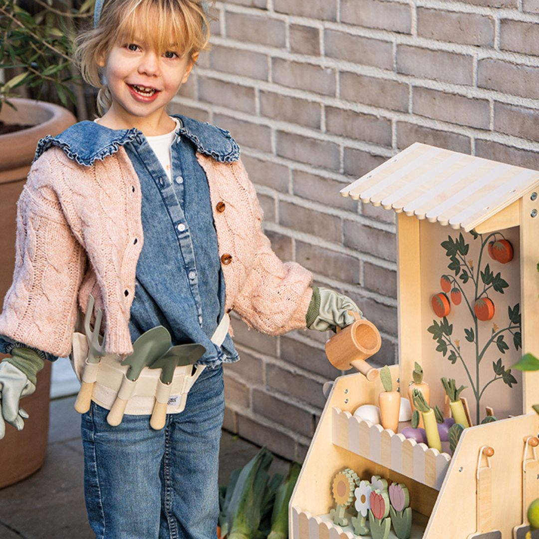 Ο απόλυτος εξοπλισμός για μικρούς κηπουρούς! Με πραγματικά εργαλεία προσαρμοσμένα σε παιδικά χεράκια, η ξύλινη ζώνη κηπουρικής ενθαρρύνει τα παιδιά να φυτέψουν, να σκαλίσουν και να φροντίσουν τον δικό τους μικρό κήπο.