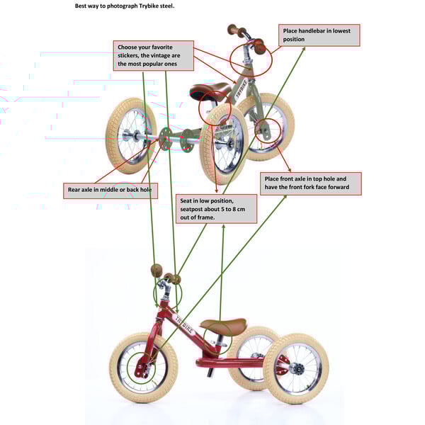 Τα Trybike σχεδιάστηκαν και αναπτύχθηκαν στην Ολλανδία από την Co & Co μετά από πολλά χρόνια εμπειρίας στα ποδήλατα ισορροπίας. Εφάρμοσαν και επέλεξαν τα καλύτερα υλικά, δημιουργώντας την πιο ανθεκτική κατασκευή και πρόσθεσε τις ωραιότερες λεπτομέρειες και ένα ποιοτικό φινίρισμα.