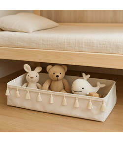 Το προϊόν είναι κατασκευασμένο από ανακυκλωμένο υλικό, προσφέροντας μια οικολογική και υπεύθυνη επιλογή για την αποθήκευση των αγαπημένων αντικειμένων του παιδιού σας. Το χρώμα των υφασμάτων μπορεί να διαφέρει ελαφρώς λόγω της φυσικής τους σύνθεσης.