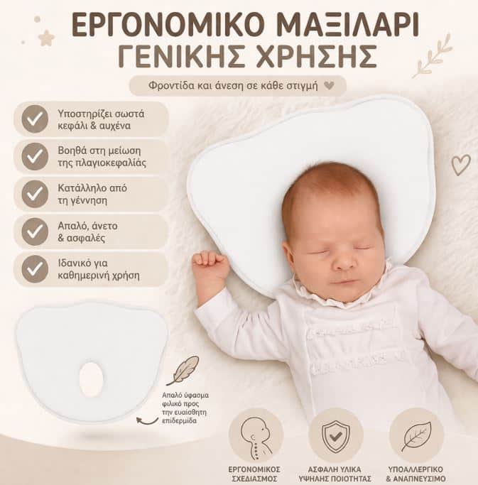✔ Βοηθά στη μείωση της πλαγιοκεφαλίας