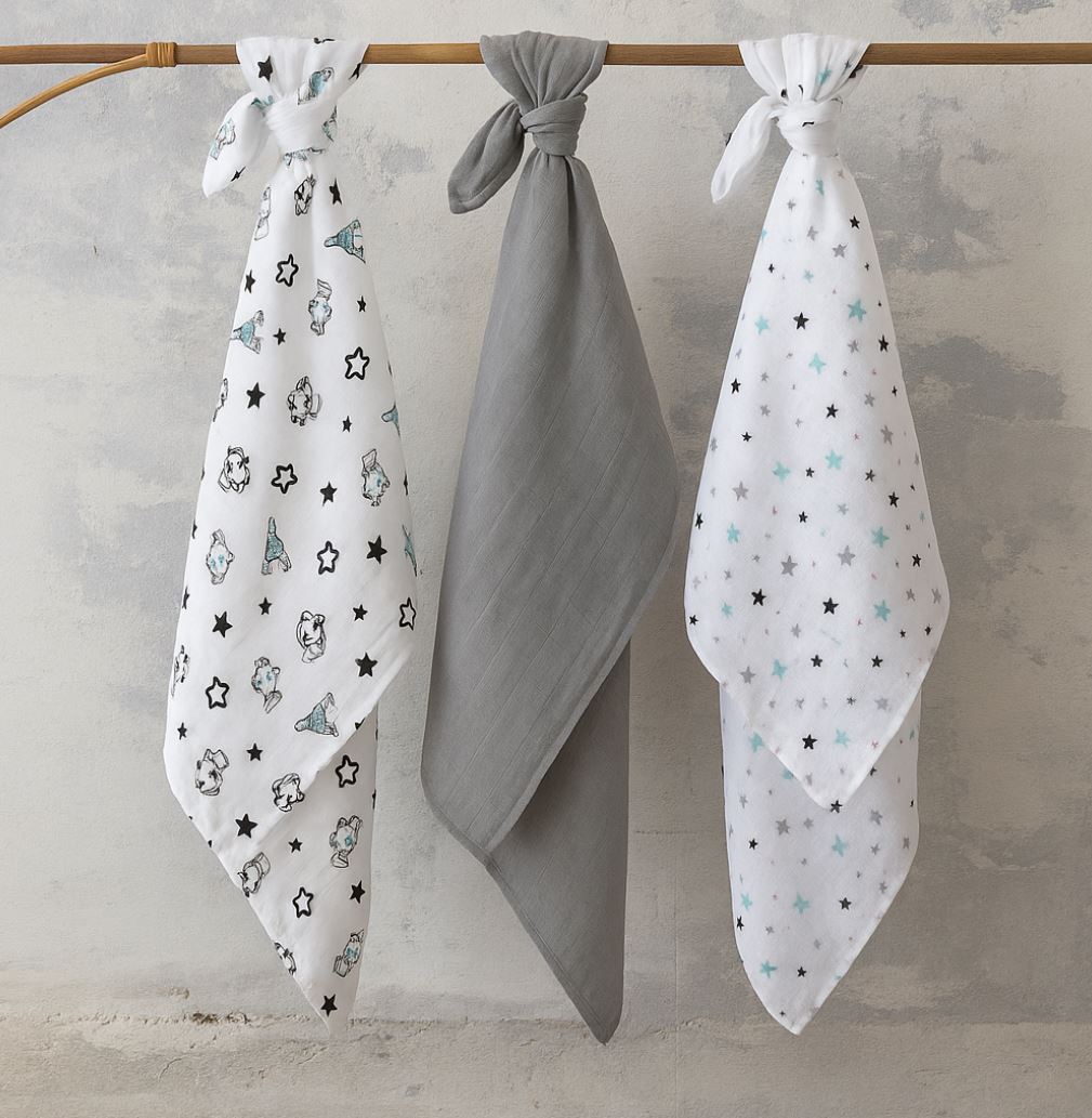 Μπορούν να χρησιμοποιηθούν από την πρώτη κιόλας μέρα της ζωής του μωρού σας - για να τυλίξετε το μωράκι σας, να το σκεπάσετε, να τη στρώσετε και να αλλάξετε το μωράκι σας οπουδήποτε και ότι άλλο μπορείτε να σκεφτείτε. Είναι βολικό ως κάλυμμα κατά τη διάρκεια του θηλασμού ή μπορείτε να τα τοποθετήσετε στον ώμο σας, όταν χρειάζεται να ρευτεί το μωρό.