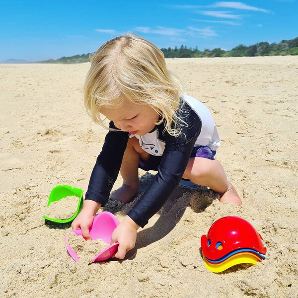 Χρησιμοποιούμε ανθεκτικά υλικά υψηλής ποιότητας που είναι 100% ασφαλή, εύκολα στον καθαρισμό και για να ενθαρρύνετε τα παιδιά να παίζουν έξω με φυσικά στοιχεία όπως νερό, την άμμο ή το χιόνι.